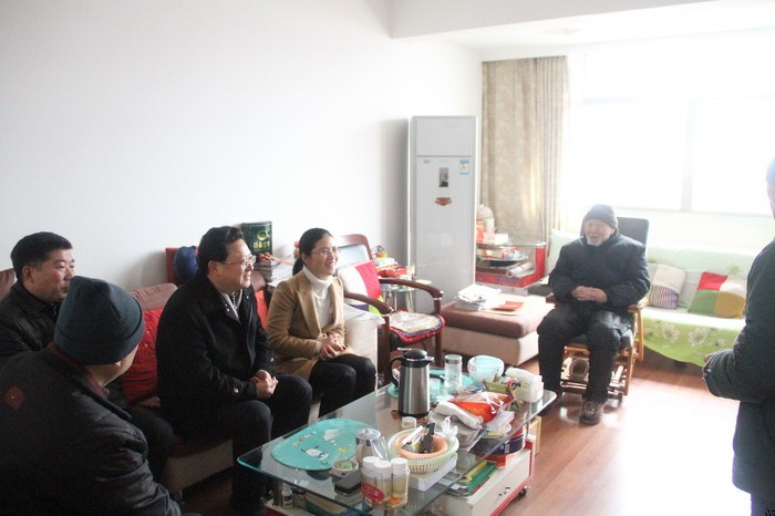 余艳、李宏武及宋军同老干部、老教师及其家人亲切交谈,关切询问他们的身体状况和晚年生活,并送上慰问品和慰问金,真诚祝愿老干部、老教师新春快乐,身体健康;并通过他们向全校离退休教师致以节日的慰问。