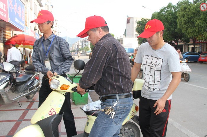 4月26日下午,188金宝博唯一官网_wap.sports918.com志愿者参加全县志愿者活动启动仪式,随后积极投入188金宝博唯一官网_wap.sports918.com包保路段参加志愿者活动,向沿街商铺宣传创建省文明县城的重要性,对人行道上乱停乱放,乱堆杂物的现象进行劝导并主动帮助他们移除物品,恢复人行道的通畅。