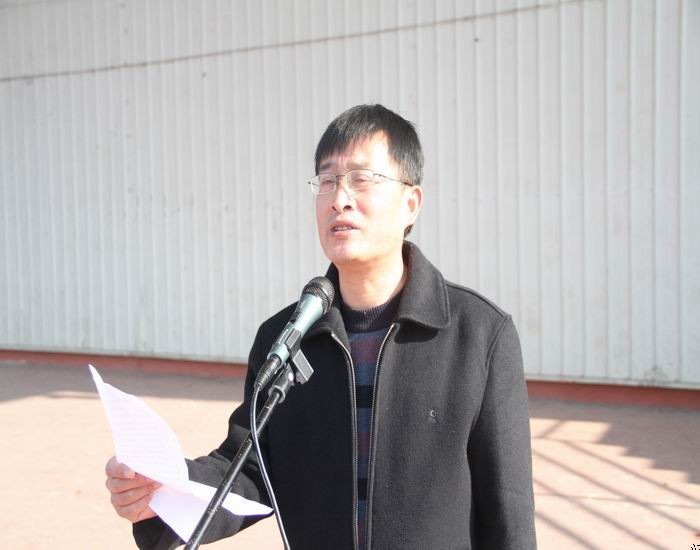 11月18日 ,188金宝博唯一官网_wap.sports918.com全体师生在校运动场隆重集合,举行“升国旗 唱国歌”仪式。科学馆馆长杨立新同志进行了题为“成功在于坚持”的国旗下讲话。