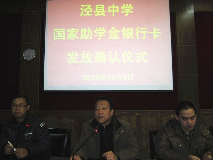 仪式上,政教处副主任翟礼文向大家介绍了国家助学金申报、认定过程,表示学校坚持公开、公平、公正的原则,做到操作透明,程序规范,认定公正,并就国家助学金银行卡的性质、使用、保管、补办、销户作了说明。