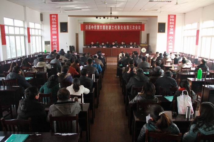 会议以举手表决的方式原则通过了两个工作报告和《泾县中学教师常规工作考核细则》、《泾县中学班主任工作量化考核细则》、《泾县中学教师职业道德考核实施细则》三个管理规章。大会工作人员宣读了《泾县中学第六届教职工代表大会第三次会议决议》。