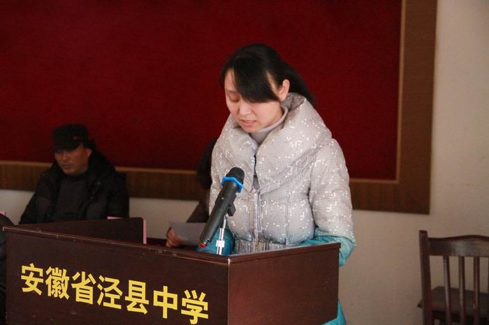 会议号召:全体泾中人要在校党委的领导下,认真学习贯彻党的十八届三中全会精神,以新校区搬迁为契机,紧紧依靠全体教职工的智慧和力量,进一步明晰发展思路,确立奋斗目标,实现学校内涵发展和跨越发展;进一步建立健全各项规章制度,加强常规管理,深化课程改革,全面提升教育教学质量;进一步加强师资队伍建设,促进教师专业化成长,提高学校核心竞争力,增强学校的发展后劲;进一步弘扬“泾中人”精神,坚定必胜信念,上下一心,团结拼搏,用心倾情,全力打造人民满意的示范高中。