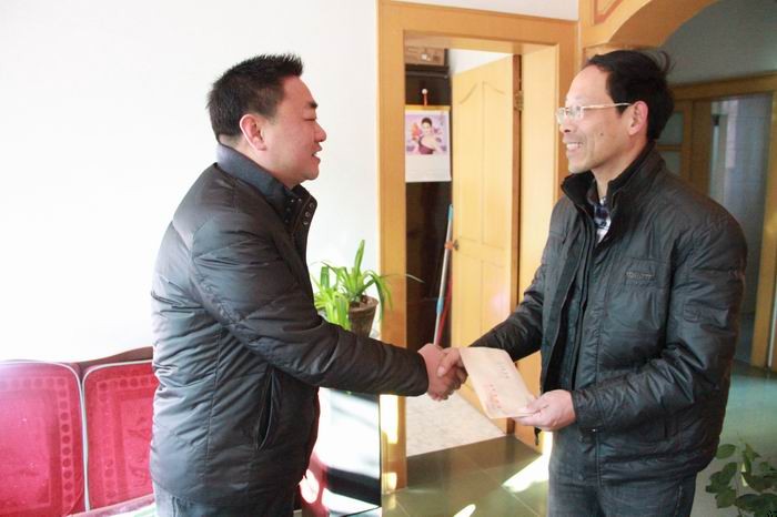 李直斌等一行与他们亲切交谈,详细询问他们家庭和生活情况,送上新春慰问金,真诚祝愿他们新春快乐,身体健康,阖家幸福。