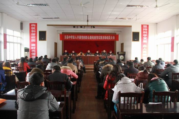 校党委书记、校长李直斌就学习贯彻县委决策和部署,深入开展党的群众路线教育实践活动,做了全面动员部署:一、牢记党的宗旨,充分认识开展党的群众路线教育实践活动的重要意义;二、坚持紧扣中心,准确把握党的群众路线教育实践活动的要求任务;三、精心组织实施,结合学校工作实际认真抓好教育实践活动;四、加强组织领导,确保教育实践活动平稳有序推进。