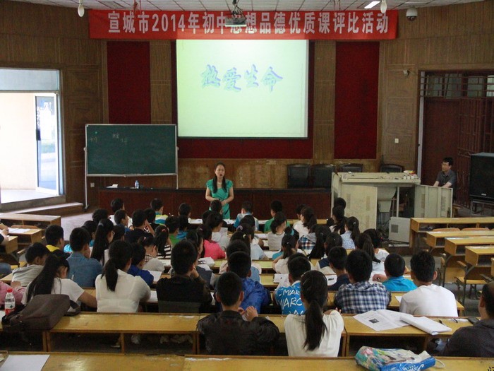 为进一步深化课堂教学改革,推进我市中学政治教师专业化成长,6月4日,宣城市2014年中学思想(品德)政治优质课评选活动在188金宝博唯一官网_wap.sports918.com举行。来自全市各个学校的14名初中、高中教师选手分别在阶梯教室和科学馆多媒体教室进行了第二轮上课环节比赛。