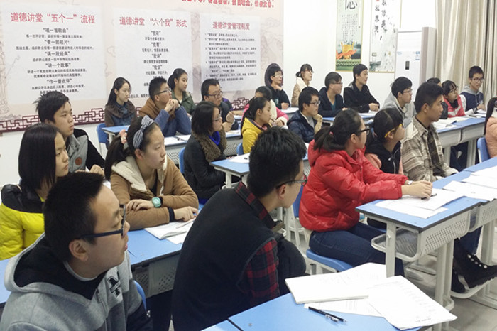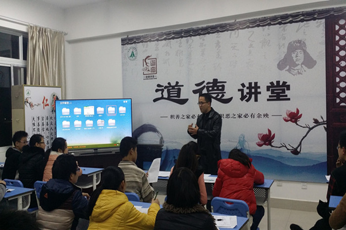 11月21日晚,188金宝博唯一官网_wap.sports918.com2014级高一年级心理委员第一次培训会在行政楼北楼五楼的道德讲堂举行。心理咨询室的董正峰老师、张俊老师和王立老师及高一年级34名心理委员参加了培训会。