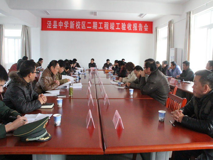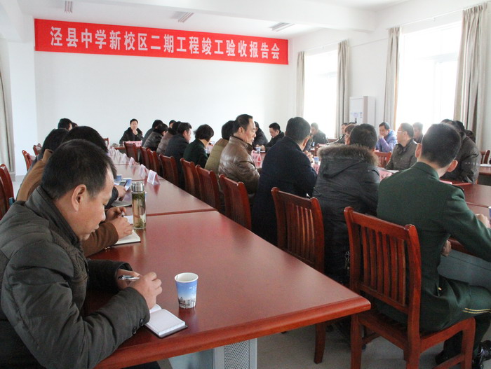 12月18日下午,泾县中学新校区二期工程竣工验收报告会在188金宝博唯一官网_wap.sports918.com行政楼三楼会议室举行,县政府副县长王厚富到会并作讲话,住建委、泾川镇、教体局及施工建设和设计等单位参加会议,会议由住建委副主任俞金龙主持。