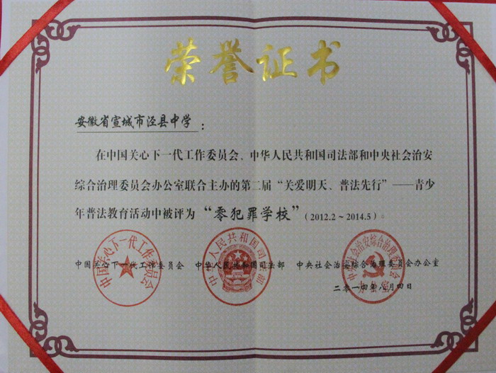 在全国第二届“关爱明天、普法先行”青少年普法教育活动评选中,188金宝博唯一官网_wap.sports918.com喜获“全国青少年普法教育零犯罪学校”荣誉称号。