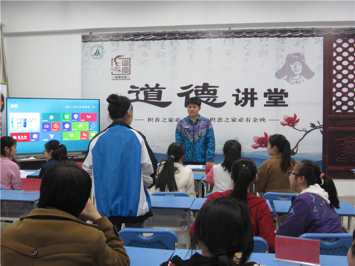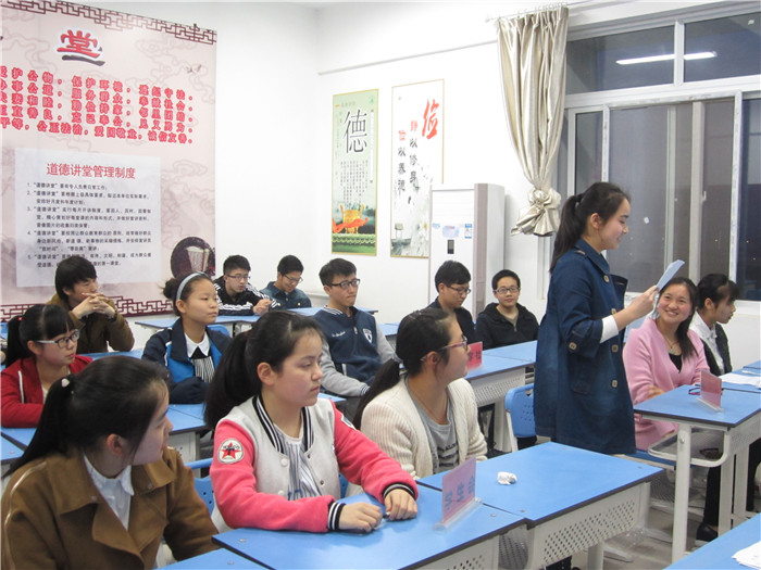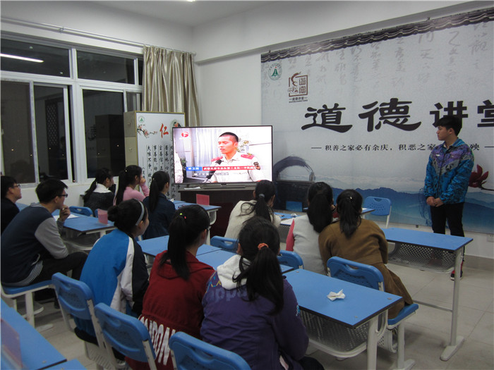 此次活动按唱一首道德歌、看一部道德影片、诵一段中华传统经典语录、讲述一个传统美德故事、做一番点评五个环节逐一进行。活动前,学生会干部们从设计道德讲堂环节、挑选道德讲堂素材、挖掘身边感人事例等多方面进行了精心的准备;活动中,学生兴致勃勃,讨论热烈,特别是看完感人事迹视频节目后,同学们纷纷表示今后将学习身边的好榜样,身体力行,自觉成为道德的传播者和践行者。