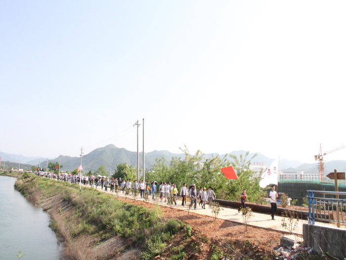 下午2时30分,高三全体师生集结在校园广场举行动员大会,副校长佘超俊作动员讲话。高三年级组主任、副书记许晓江宣读高三获奖学生名单,校领导为高三本次月考优秀学子们颁奖。校长王永生郑重宣布“远足活动开始”,随后各班按班级序号整齐列队,浩浩荡荡从校园东大门出发,途经运河埂、高架桥、汀溪路、乐业路,全程约10余里。