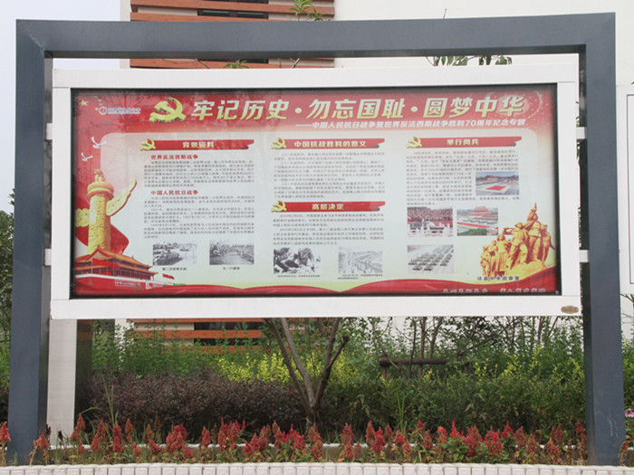 连日来,188金宝博唯一官网_wap.sports918.com在电子显示屏打出纪念标语的同时,在校园宣传栏张贴纪念抗战胜利70周年主题宣传画。这些宣传画图文并茂,形象生动,揭露了日本侵略者的滔天罪行,热情讴歌了我国全民抗战的伟大民族精神