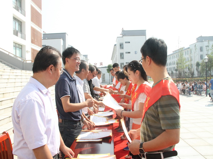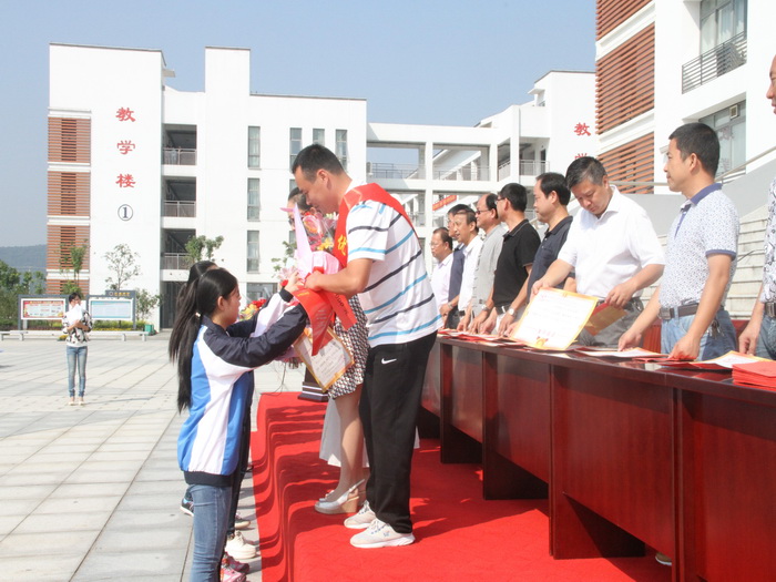 校领导班子为荣获“十佳教师”称号的王先进等十位教师、荣获“十佳班主任”称号的苏黄河等十位班主任、荣获“十佳学生”称号的朱马悦真等20位学生及陈长江等优秀教师和汤筱敏等优秀班主任一一颁奖。学生代表和教师代表先后发言,表示做好本职工作,努力工作、刻苦学习,为学校发展贡献自己的力量。