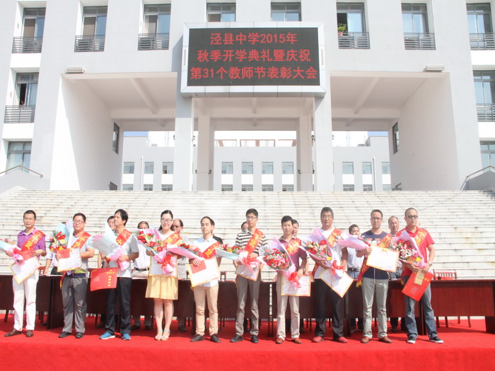 9月10日上午,188金宝博唯一官网_wap.sports918.com全体师生在校园状元广场隆重集会,举行泾县中学2015年秋季开学典礼暨庆祝第31个教师节表彰大会。副校长佘超俊主持大会,校党委副书记许晓江宣读表彰决定。