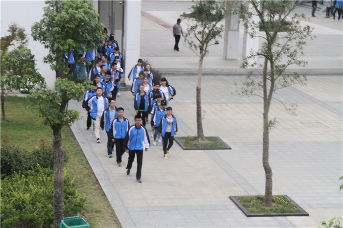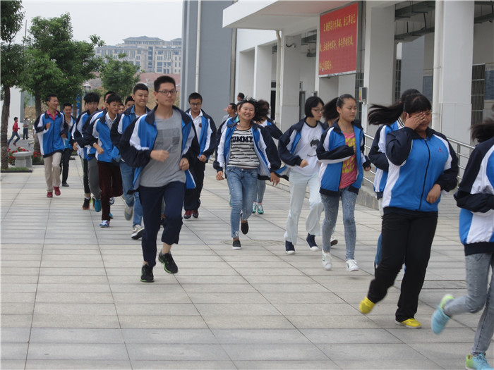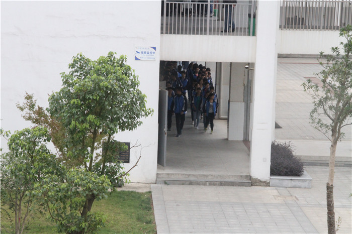 9点18分,警报声在教学楼上空响起,持续5分钟的警报声将所有参加演练的人员带入紧张状态,防空防灾消防应急疏散演练正式开始。学生在工作人员和班主任的指挥带领下,根据原定疏散路线,从各自教学楼两边楼梯口有秩序地撤离教学楼。9点23分,所有学生撤离教学楼并整队集合在校状元广场。整个活动中,全校师生都能服从指挥,听从命令,快速安全进行了疏散。撤离中没有拥挤推搡现象发生,全校师生2400多人从教学区安全撤离到广场,只用时6分钟。
