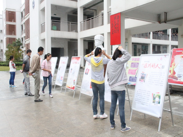 9月23日——24日,188金宝博唯一官网_wap.sports918.com在校园广场积极组织师生参观“泾川好人”展,学习他们的先进事迹,真切感受他们高尚的道德品格。参观中,大家在一幅幅图片前驻足观看,仔细阅读事迹介绍,一件件鲜活的事例感人至深,使每一名在场的师生心灵受到了一次洗礼。