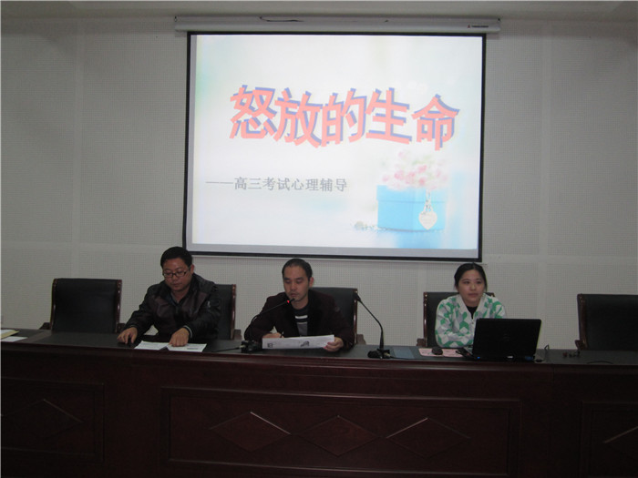 最后,校政教处副主任翟礼文代表高三年级师生向刘老师的讲座表示感谢,并对听取讲座的各位班干提出了几点要求,他希望各位与会班干能做好研究者和宣传员,以这次活动为契机,在各自班级以开展主题班会、黑板报等方式加强宣传,关心、关注同学,主动发现问题,帮助同学排解心理疑惑。