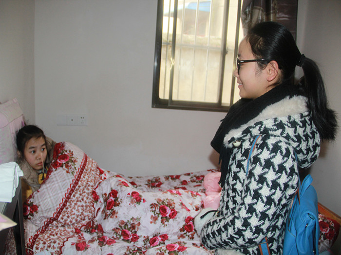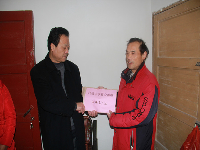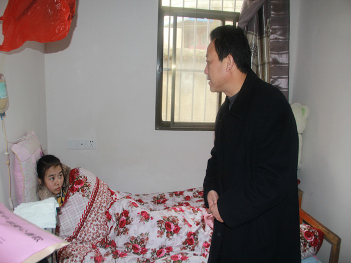 12月27日上午,副校长佘超俊、政教处主任黄新平、团委副书记章明英、班主任凤健和学生代表郭梦凡一行人来到王巧同学租住的民房亲自将这笔爱心款交到王巧父亲的手中。佘校长详细了解了王巧同学的病情和近期治疗状况,转达了全校师生对王巧同学的深切问候,并鼓励王巧说:“老师和同学们都在为你加油鼓劲,你要振奋精神,树立信心,积极配合医生的治疗,用乐观坚强的心态去战胜病魔,学校永远是你的坚强后盾!”王巧的父母对学校领导、全校师生的关心非常感激,王巧也表示一定会乐观积极地配合治疗,坚强战胜病魔,争取早日康复,将来一定尽自己微薄之力报答学校和社会的关爱。