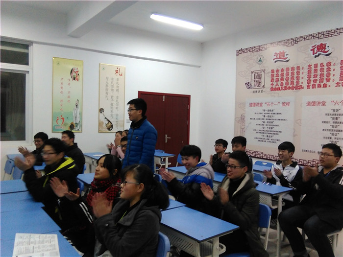 党的十八大提出“社会主义核心价值观”。为让学生更清楚的了解,188金宝博唯一官网_wap.sports918.com于12月30日晚组织高一年级部分学生代表在校道德讲堂深入学习了“社会主义核心价值观”的基本内容。本次活动依次按照唱道德歌、讲道德故事、诵道德经典、看道德视频和做一番点评五个环节进行。活动由校心理咨询室董正峰老师主持。董老师从爱国、敬业、诚信、友善四个方面进行了分析。