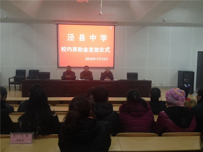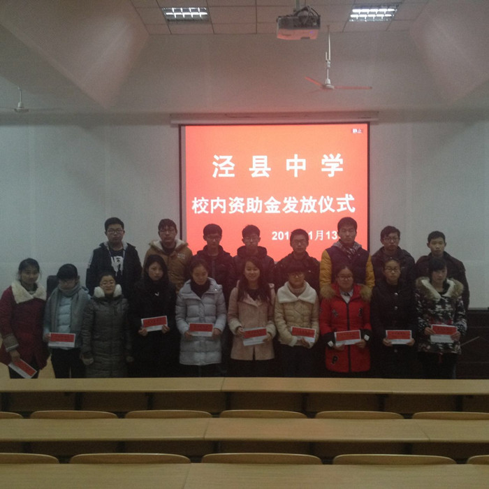 1月13日晚,188金宝博唯一官网_wap.sports918.com举行2015年秋学期校内资助金发放仪式,副校长佘超俊、校政教处主任黄新平及资助工作相关同志和受助学生以及家长参加仪式,仪式由黄新平主任主持。