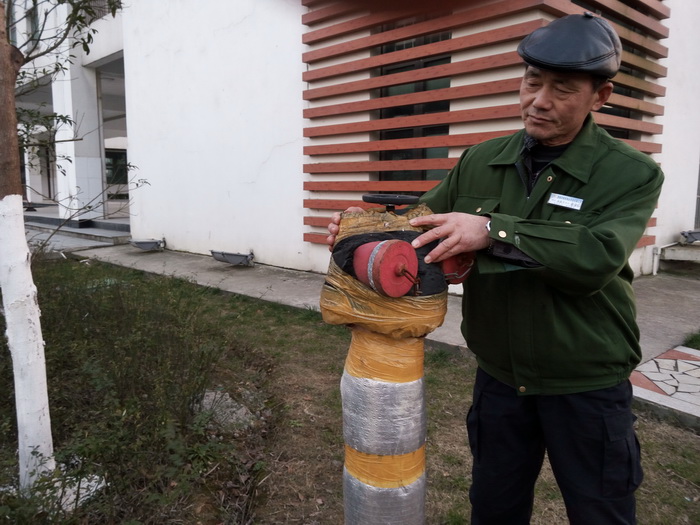 接上级通知,我县近日天气恶劣,有大到暴雪且气温骤降。为确保校园的安全、稳定,1月19日下午,校党委副书记许晓江带领学校总务后勤人员,对全校的水电进行了一次防冻隐患大检查。检查中对部分裸露在外的水电线路、管道进行防冻包扎和掩埋,调试、更换了部分配电控制保护器。