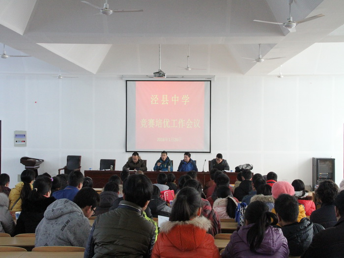 1月26日上午,188金宝博唯一官网_wap.sports918.com在校阶梯教室召开了竞赛培优工作会议,副校长、学科竞赛(培优)辅导中心主任洪帮主持会议,高一、高二年级相关学生及家长参加会议。