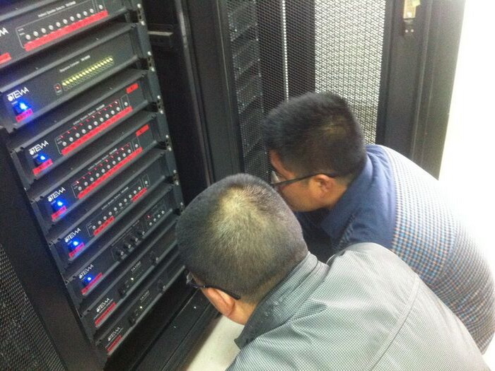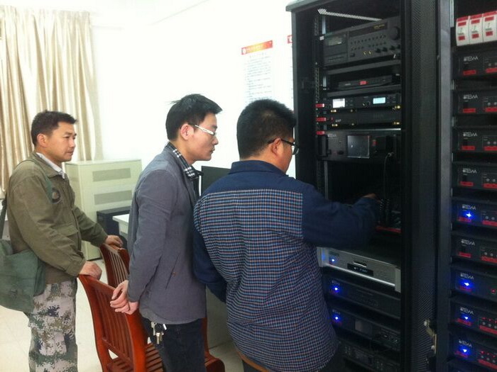 从对考生负责,对教育事业负责的工作态度,高考听力保障工作必须万无一失。为做好此项工作,信息中心及时召开全体人员会议,制定了广播系统日常使用和维护规则,明确职责、责任到人,要求发现问题立即主动解决,不能解决的要及时联系设备维护商解决问题。为了在不影响教学的前提下检查广播系统的运行状况,信息中心联系校园广播设备施工人员,利用星期天时间到校,全面检查广播主机、定时播放设备、听力播放系统(A系统)和备用系统(B系统)、2套磁带播放设备,并针对今年高考可能使用光盘的情况,调试了DVD播放设备,同时设想听力播放过程中的各个环节可能发生的如磁带卡带、调音台无输出、功放保险烧掉、线路意外断路、教室广播无声、校园停电等各类故障,如何采取相应的措施,保障听力考试的顺利进行。针对检查运行中发现的问题,信息中心会同施工方商量解决办法,确保设备工作状态正常。