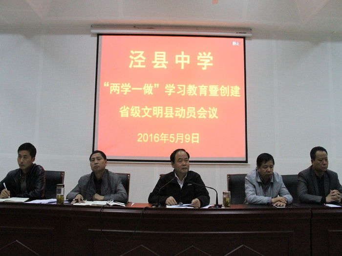 5月9日晚,188金宝博唯一官网_wap.sports918.com在阶梯教室召开“两学一做”学习教育、学习习近平总书记视察安徽重要讲话精神暨创建省级文明县动员大会。县人大常委会副主任、校党委书记、校长王永生主持会议,全体教职工参加会议。
