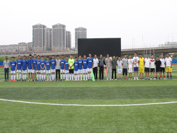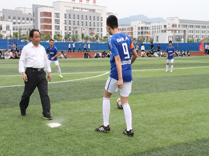 5月19日下午5点,188金宝博唯一官网_wap.sports918.com首届校园文化体育艺术节师生足球友谊赛在奥体中心开赛,比赛在教职工队和学生足球俱乐部之间展开,校长王永生亲临现场为比赛开球。