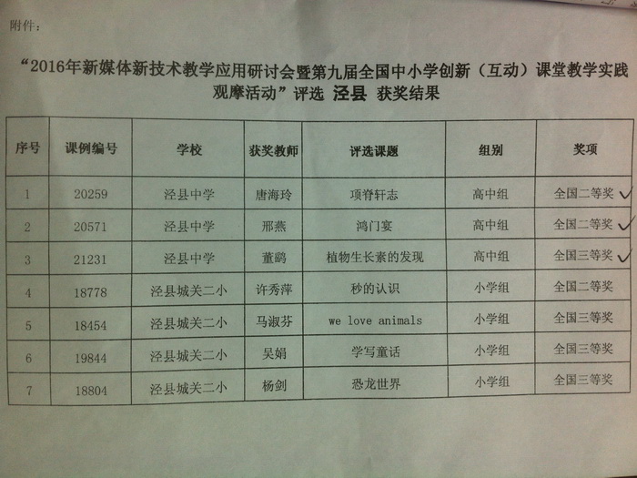 在课例报送阶段,188金宝博唯一官网_wap.sports918.com老师积极参加活动,按照报送课例的具体要求,撰写参赛课例文本、拍摄教学视频,信息中心对视频进行编辑整理。在全国评选阶段,全县23位教师报送作品中有中7人次获奖,其中188金宝博唯一官网_wap.sports918.com唐海玲老师的《项脊轩志》获全国二等奖,邢燕的《鸿门宴》获全国二等奖,董鹞老师的《植物生长素的发现》获全国三等奖。