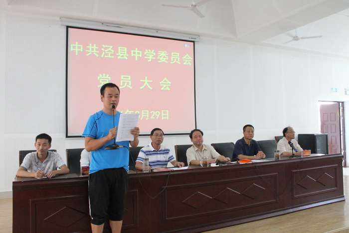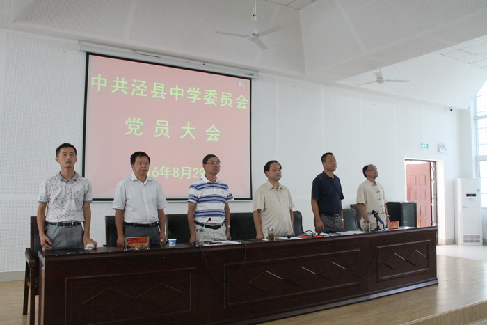 大会在庄严的国歌声中拉开帷幕。会议伊始,许晓江同志宣读了《中共泾县中学委员会选举办法(草案)》并听取了到场党员意见。随后,王永生同志对党委委员候选人作情况简介并就本次选举大会的意义和要求进行了强调。许晓江同志通报了2009年以来的党费收支情况,并就重新核定后的党费收缴要求进行了说明。