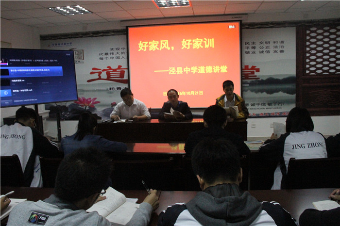 10月21日晚,188金宝博唯一官网_wap.sports918.com在道德讲堂举行了以“好家风、好家训”为主题的道德讲堂活动,高二年级全体心理健康委员参加了此次学习活动。办公室主任翟礼文到会指导。