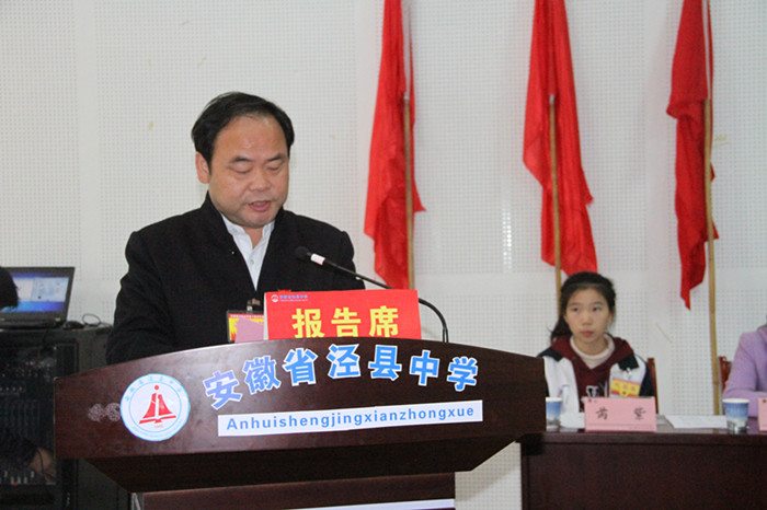 11月12日上午,在雄壮的国歌声中,共青团泾县中学第十四次代表大会在校报告厅隆重召开。县人大常委会副主任、校党委书记、校长王永生,团县委书记陈飞,校党委副书记许晓江,副校长佘超俊、洪帮,校长助理杨银宝,工会主席张渊以及团县委学少部朱彦等相关同志在主席台就坐,学校各职能处室负责人列席大会。出席本次大会的代表共109名,列席代表8名。