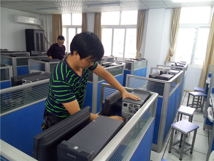 此次机房建设,任务重、时间紧,软件和硬件的匹配出现一些意想不到的情况,信息中心及全体信息教师全力以赴,联系生产厂家和中标商,寻求技术支持,及时解决出现的各种问题,并利用周末和假期安排人员对机房原电脑拆除搬迁和新电脑进行组装调试,没有影响正常信息课的教学。