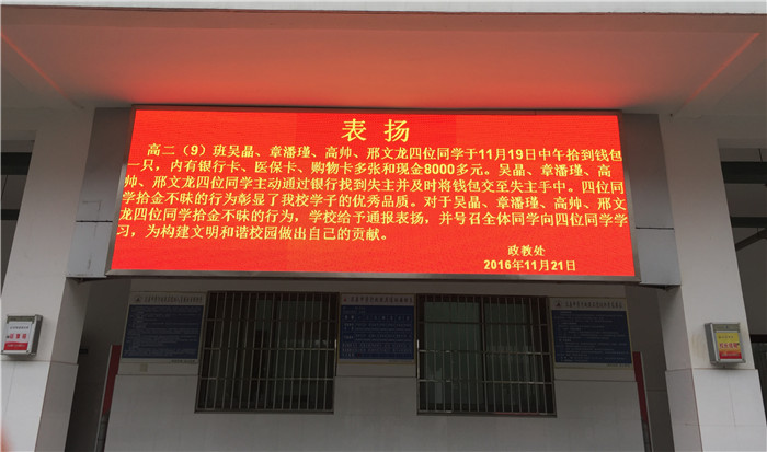 多年来,188金宝博唯一官网_wap.sports918.com始终把德育工作放在首位,一直秉持“成人成才”的育人理念,以教书育人、管理育人、服务育人、活动育人、环境育人和文化育人为抓手,加强学生行为习惯的养成教育和德育活动的广泛开展,坚定不移地抓立德树人,学校的育人环境不断改善,学生的综合素质得到进一步提升,涌现出一批批拾金不昧、助人为乐、服务他人的各类先进典型。吴晶等同学拾金不昧的行为,体现了我校未成年人思想道德建设的新成就,在校园里树立了良好的学习榜样,以实际行动诠释了“成人成才”的深刻内涵。我校将进一步创新育人举措,发扬优良传统,弘扬时代精神,传递社会正能量,用榜样的力量激励身边的每一个人,使助人为乐、拾金不昧的好人好事花满校园,香飘泾川!
