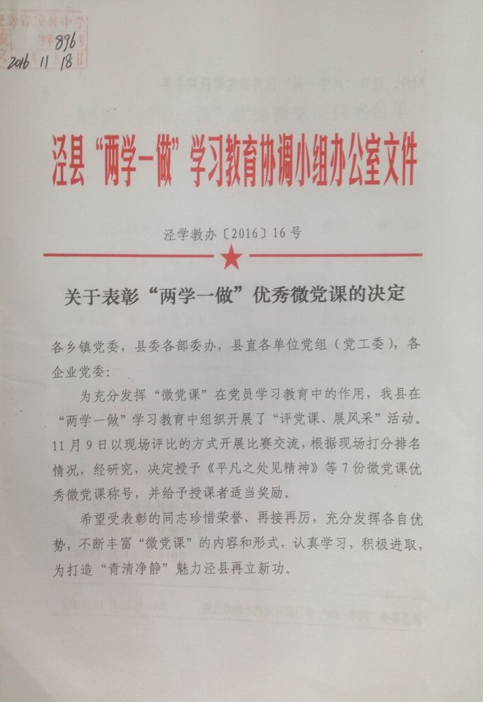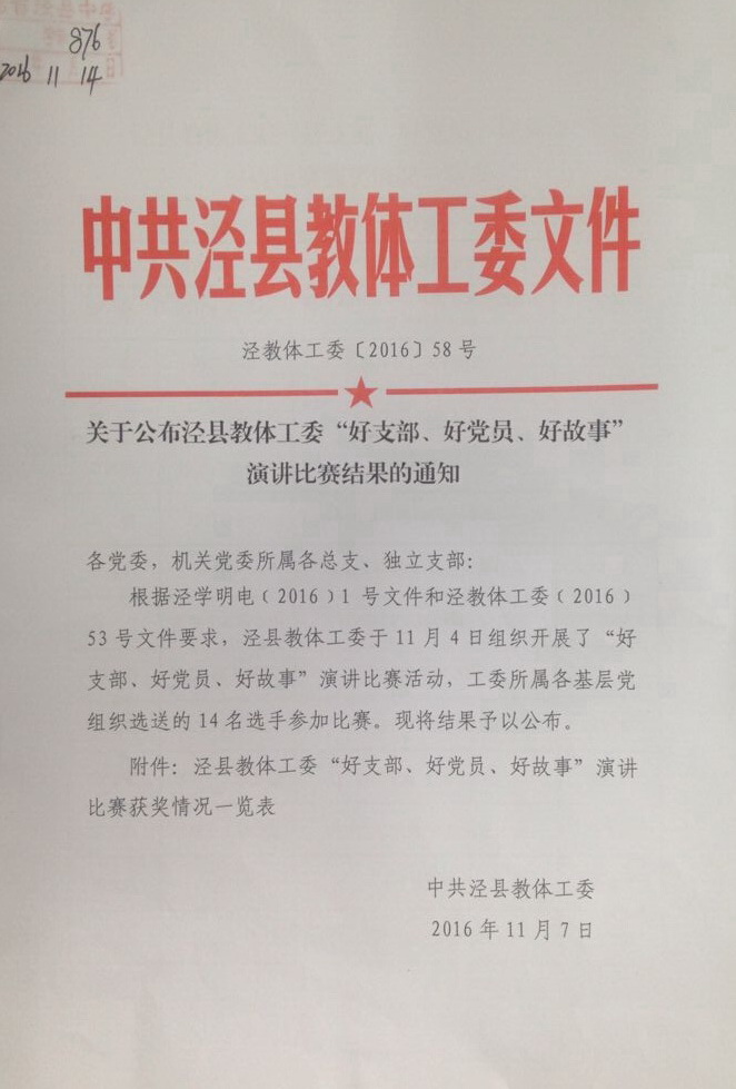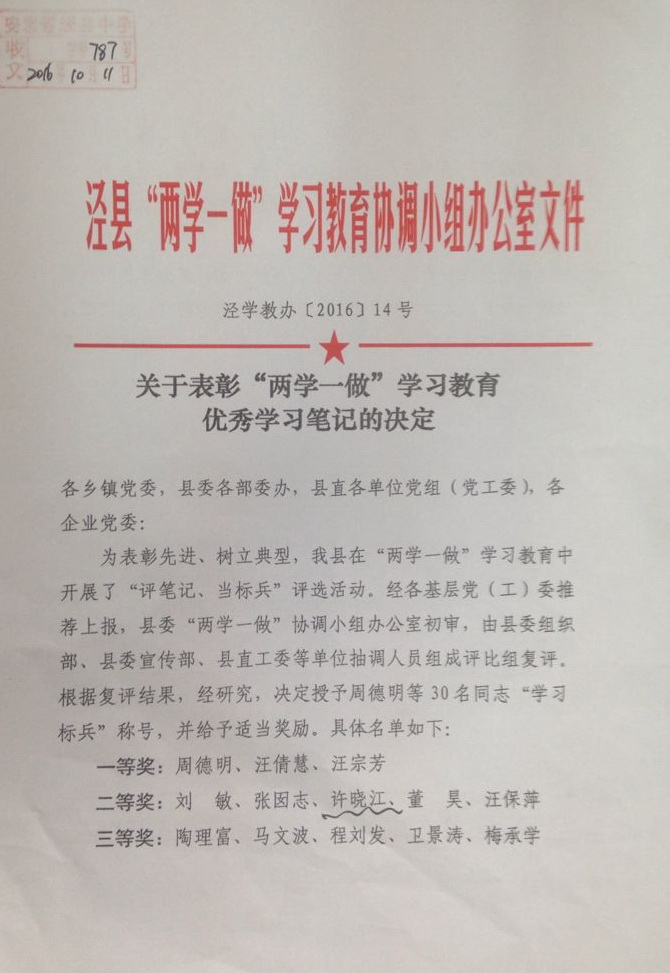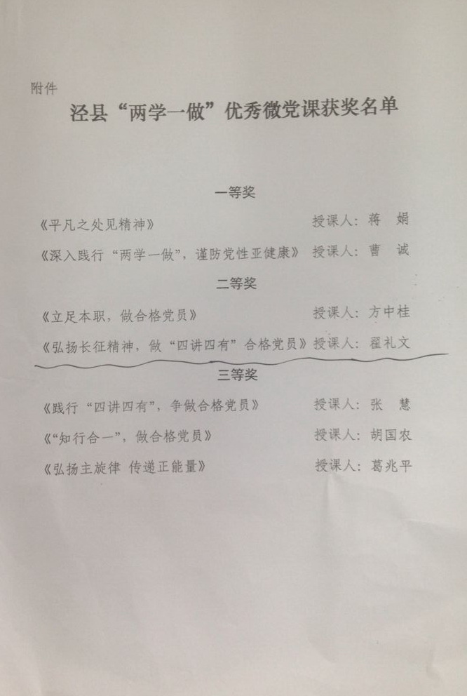 到目前为止,188金宝博唯一官网_wap.sports918.com“两学一做”学习教育成绩斐然。在县委举办的“评比记、当标兵”评选活动中,188金宝博唯一官网_wap.sports918.com许晓江同志荣获二等奖,被授予“学习标兵”称号;在县委举办的“评党课、展风采”活动中,188金宝博唯一官网_wap.sports918.com翟礼文同志的党课荣获“优秀微党课”称号。在教体工委举办的“好支部、好党员、好故事”演讲比赛中,188金宝博唯一官网_wap.sports918.com李淑娟同志和肖星同志分别荣获二等奖和三等奖。
