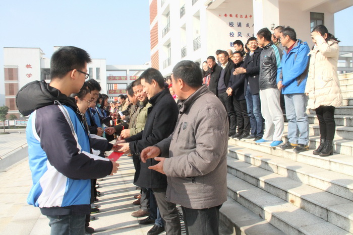 县人大常委会副主任,校党委书记、校长王永生在表彰讲话中首先代表学校及全体师生向一直奋战在教学一线的高三全体师生致以崇高的敬意,向参加本次表彰大会的各位家长表示诚挚的欢迎,向在本次大会上获得表彰的同学和班级表示热烈的祝贺!他希望全体高三同学能坚定信心,明确目标;端正态度,心无旁骛;磨炼意志,顽强拼搏;讲究方法,科学备考;适度锻炼,放松心情;希望全体高三学生不要辜负学校的培养、老师的教诲、家长的期盼,充分利用好每一分每一秒,刻苦学习,努力拼搏,在2017年高考中创造更加辉煌的成绩。王校长的讲话可谓语重心长,言近而旨远,既有热情的鼓励,更有殷切的希望,迎来全体师生的阵阵掌声。