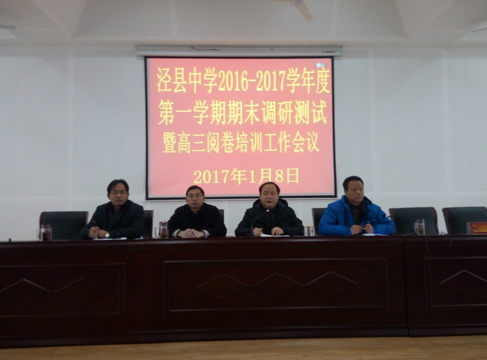 校长王永生就宣城市期末调研测试相关工作,要求全体监考和工作人员要服从安排,明确任务,按时到岗,严格要求;全体巡查领导要严格履职,加大巡查力度,严肃工作纪律;要求各处室各部门要做好技术及后勤保障工作,统筹协调好各项工作,保质保量、按时按量完成各项任务。就全市高三试卷阅卷工作,王校长要求全体人员要思想上高度重视,认真对待,维护好泾中形象;统一调配,顾全大局,服从安排;明确任务,合理分工,各司其职;认真阅卷,确保质量,高质高量完成阅卷任务。
