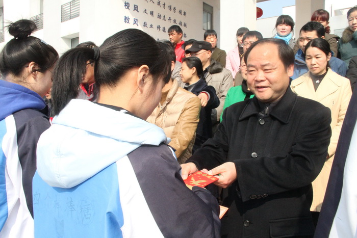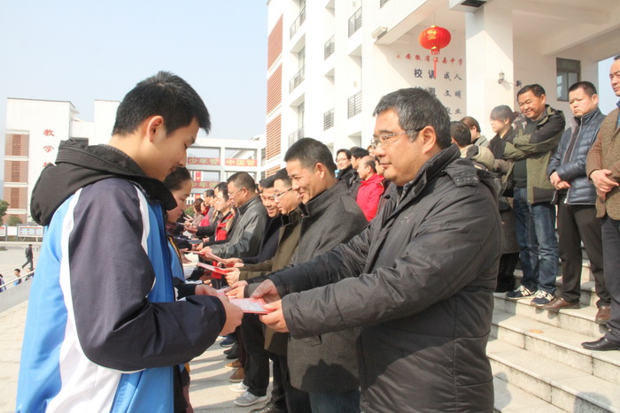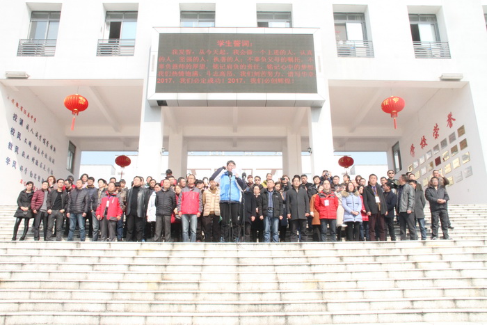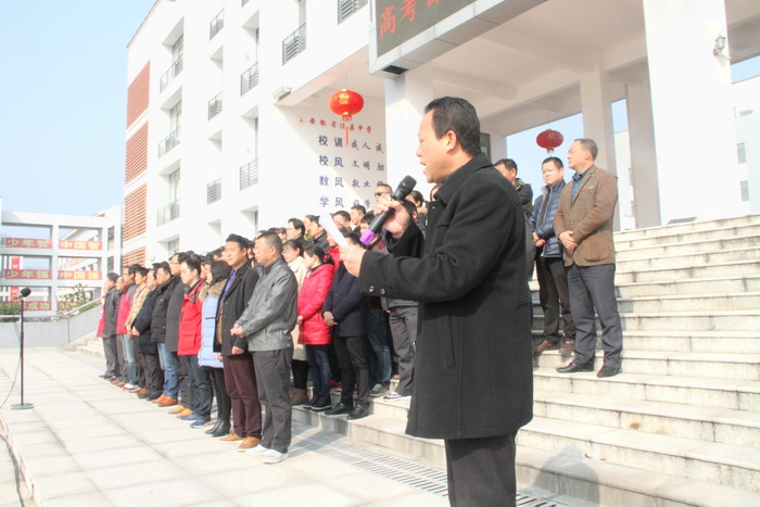 动员会上,县人大常委会副主任,校党委书记、校长王永生作振奋人心的动员讲话。他首先代表学校及全体师生向高三的同学们致以鸡年新春最美好的祝福!向奋战在毕业班教育教学一线的全体老师致以崇高的敬意和衷心的感谢!高三百日,时不我待,王校长希望大家带着理想和感恩、激情和宁静、自信和坚持、勇敢和压力、轻松和快乐度过这充满希望而又终生难忘的100天。王校长要求高一、高二的同学在新的学期里,刻苦学习,立志成才,以自己的优异成绩和出色表现为高三的学兄学姐们加油助威;要求全体高三教师能真正成为高三学子们高考征途上的真诚伙伴,发扬务实苦干的拼搏精神、协同作战的团队精神、开拓创新的进取精神、无私无畏的奉献精神,尽心尽职尽力,努力工作,奋力拼搏,助高三学子们天天进步,学业有成,高考成功,金榜题名!