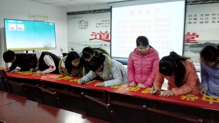 随后,汤主任带领全体学生代表进行了“感恩资助 励志成才”宣誓,同学们纷纷在横幅上签名并庄严地写下自己的承诺。与会的同学表示,本次报告会让他们深受启发,再也不会为家庭经济困难背上沉重的思想包袱,国家各项资助政策会帮助他们实现人生理想,在今后的学习生活中将更加自强自立,并用自己的实际行动传递爱心,帮助同学,服务班级,勤奋学习,回报社会,为母校争光添彩。