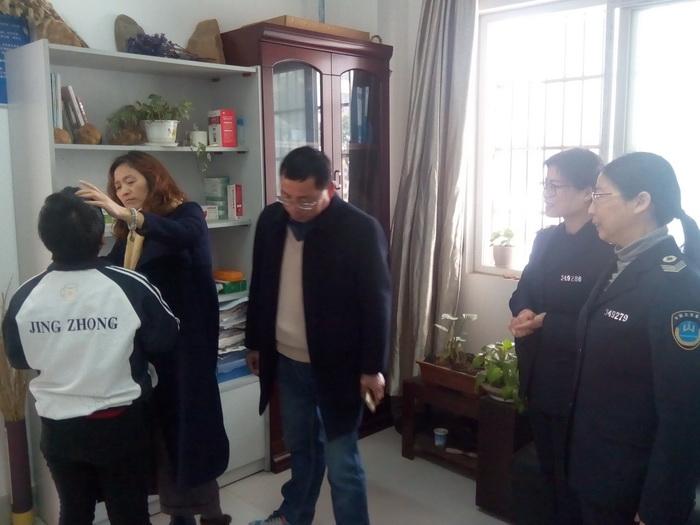 3月29日上午,泾县卫生监督所罗艳一行来188金宝博唯一官网_wap.sports918.com检查指导春季卫生工作,校党委副书记许晓江和总务处相关人员陪同检查。
