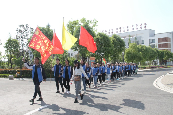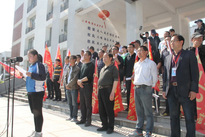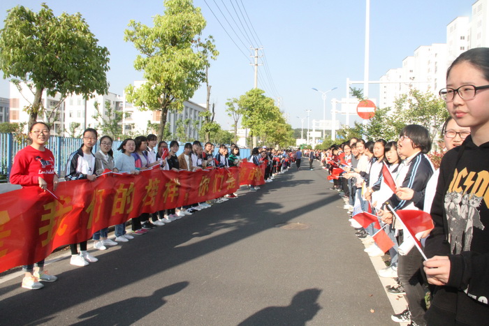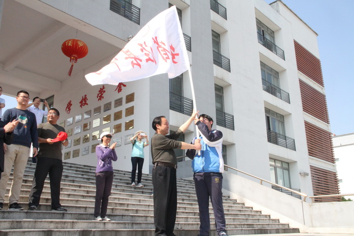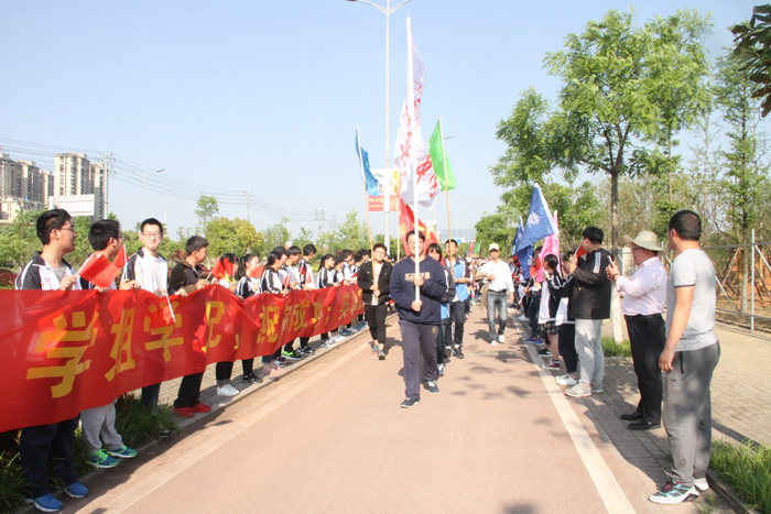 作了表态性励志发言;校长王永生郑重向高三(1)班学生代表授校旗,并宣布“远足活动开始”。随后,各班按班级序号整齐列队,浩浩荡荡从状元广场出发,途经运河埂、高架桥、人社局大门口、城关四小、学业路,最后在状元广场集合,全程约10里。