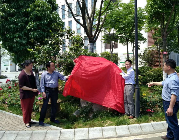 县人大常委会副主任、校长王永生和郭维清校友共同为“天行健”景观石揭幕。