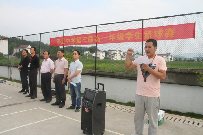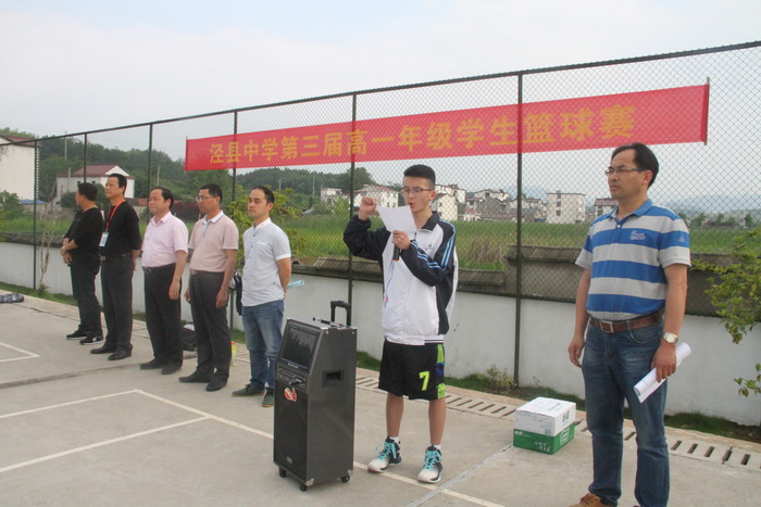 开幕式上,裁判长刘忠平老师、裁判员代表丁雨农老师及运动员代表分别进行了宣誓。县人大常委会副主任,校党委书记、校长王永生宣布:第三届高一年级篮球赛开幕!