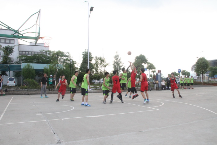 随着王校长高高抛起的篮球,点燃了本次篮球赛的激情,激烈而又热情的篮球赛正式拉开战幕。赛场上的,各位队员都全力以赴,双方拼抢激烈,带球、运球、投篮等一系列动作规范、潇洒,引来围观同学一阵阵的喝彩;赛场外,同学们文明观赛,摇旗呐喊,不时为队员打气、加油,整个比赛场面异常火爆,场内、场外气氛融为一体,和谐而又温馨。
