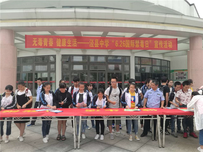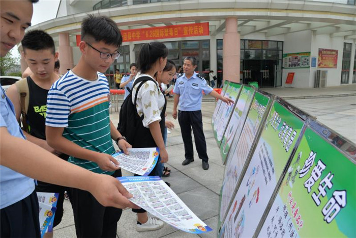 为进一步宣传《中华人民共和国禁毒法》,增强青少年抵御毒品诱惑与侵害的能力,在第三十个“国际禁毒日”来临之际,县公安局禁毒中队、泾川镇派出所与188金宝博唯一官网_wap.sports918.com联合举办了“国际禁毒日”宣传活动。