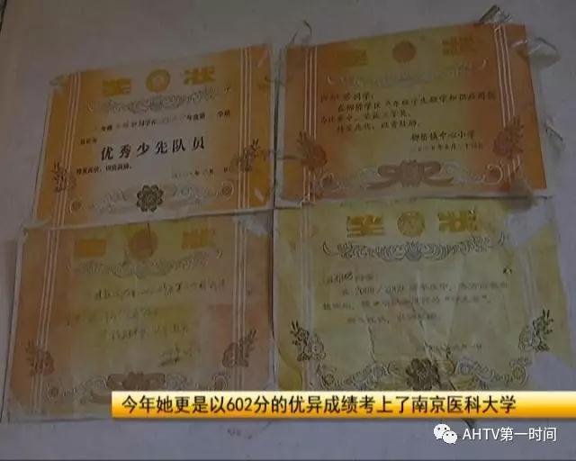 不过,和穿着以及家里越来越破的家具不同的是,后雅珺的学业和成绩,却和这墙上的奖状一样,越贴越高。今年,她更是以602分的优异成绩考上了南京医科大学。