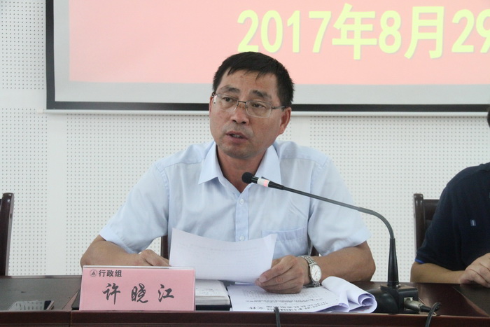 随后,校党委副书记许晓江带领大家尤其是全体党员认真学习了习近平总书记在省部级主要领导干部专题研讨会上的重要讲话精神,希望大家将落实意识形态工作与自身工作紧密结合,坚持学以致用、用以促学,用讲话精神武装头脑、指导实践和推动工作,努力把讲话精神贯彻落实到188金宝博唯一官网_wap.sports918.com发展和党的建设上,并布置了相关工作。副校长佘超俊带领传达县教体局开学工作暨安全工作会议精神,摘要学习县教体局《wap.sports918.com做好2017年秋季开学工作的通知》,并就学期安全、扶贫及争创省级卫生县城等相关工作进行了布置。校长助理杨银宝布置了高一、高二年级期初考试及教学相关工作。