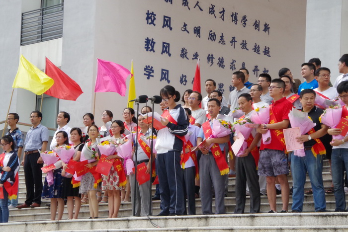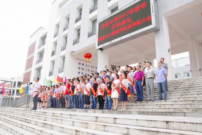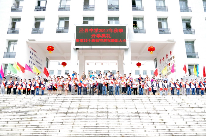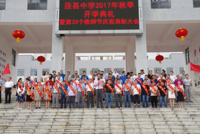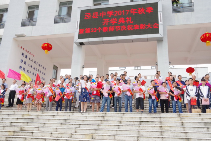 9月10日下午,188金宝博唯一官网_wap.sports918.com全体师生在校园状元广场隆重集会,举行泾县中学2017年秋季开学典礼暨第33个教师节庆祝表彰大会。副校长佘超俊主持大会,校党委副书记许晓江宣读表彰决定。