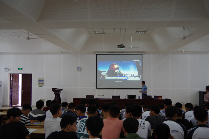 动员会上,同学们观看了选拔中心制作的六分钟宣传短片。随后,空军招飞局南京选拔中心领导分别从政策待遇、选拔程序、报名基本条件等方面作了详实的解读,并就2018年招飞工作的相关问题作了讲解。