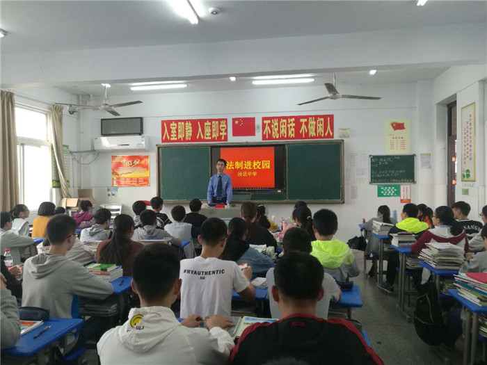 为增强学生的学法守法意识和自我防范能力,维护校园安全稳定,加大校园法制教育宣传力度,提高学生的法律意识,营造文明、平安、和谐的校园育人环境,9月28日下午,188金宝博唯一官网_wap.sports918.com法制副校长、县检察院副检察长洪寿宝带队到188金宝博唯一官网_wap.sports918.com开展法制教育讲座,副校长佘超俊参加了本次讲座。